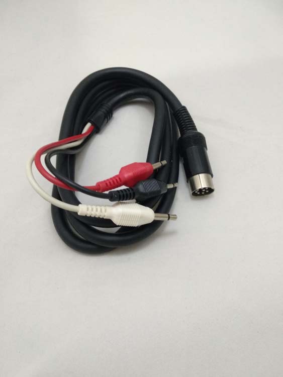 The connectors it carries are, on one side DIN 8P, on the other 1 Jack 2.5 connector and 2 Jack 3.5 connectors.