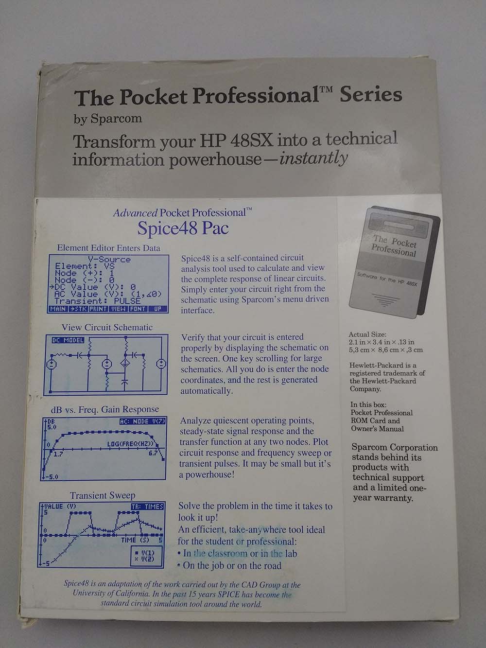 Sparcom Spice48 PAC Calculator Card Hp 48GX/48SX (nº301)