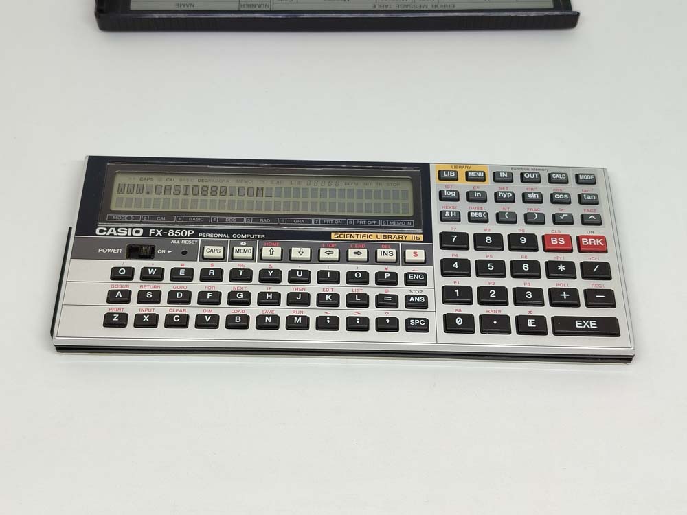 Calculadora Casio FX-850p, calculadora usada pero en buen estado. El papel de las librerias está en inglés.
